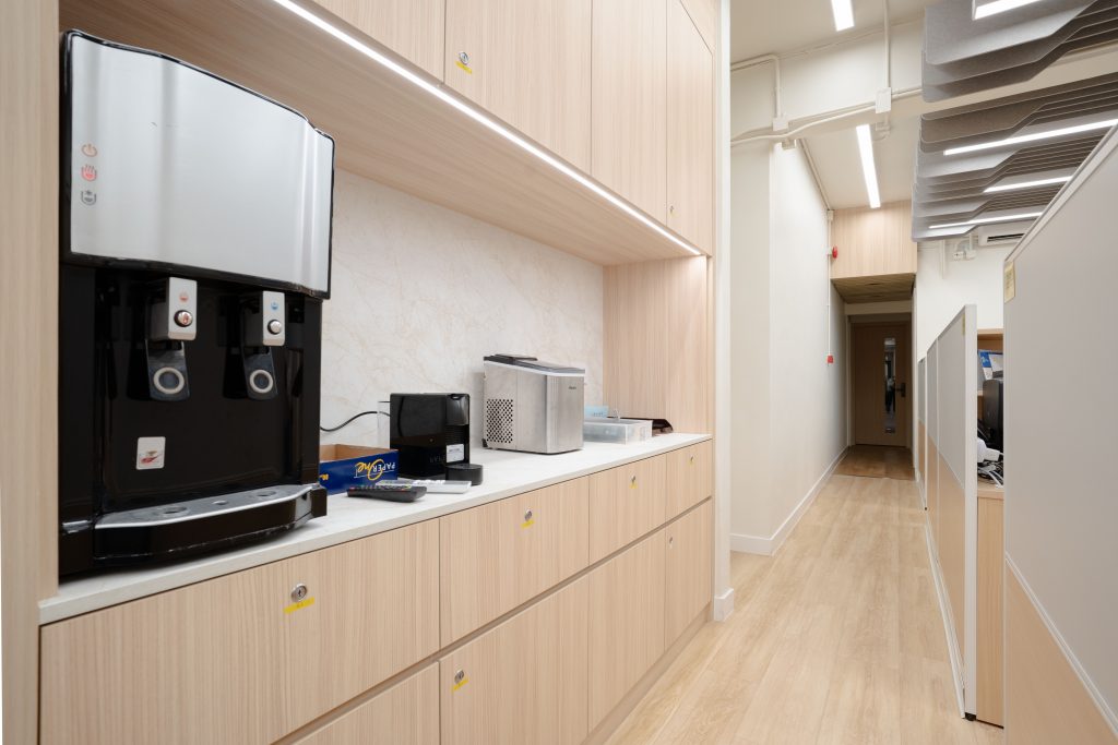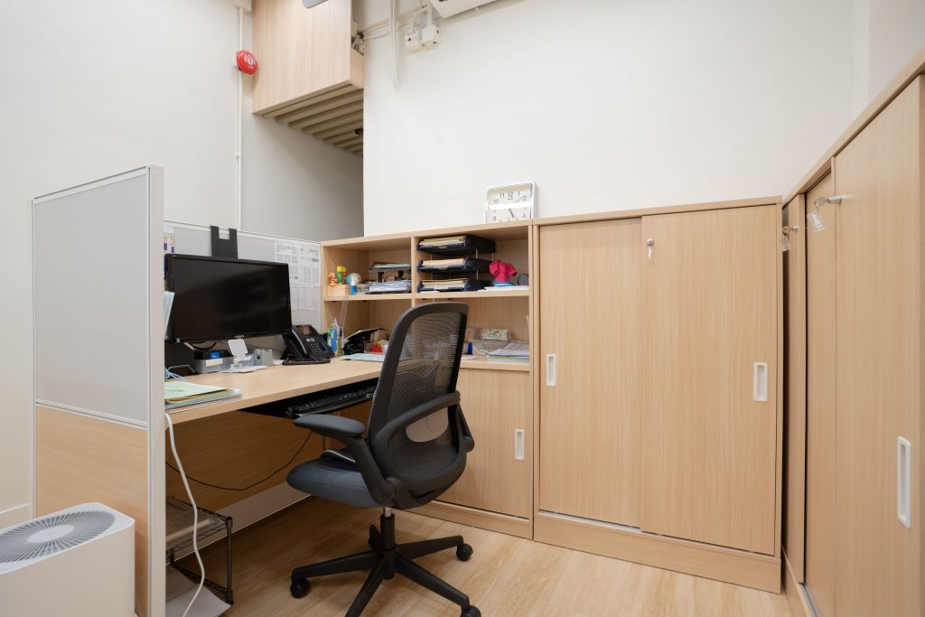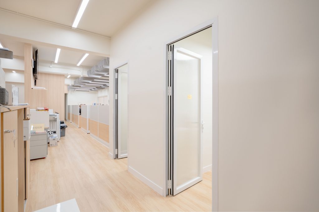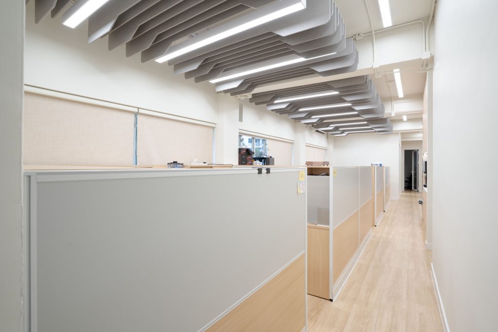 設計延續了現代簡約風格,工作區分為多個獨立隔間,方便教師日常使用。整體布局靈活,兼顧個別工作與團隊協作需求,體現了功能性與美學的完美結合。